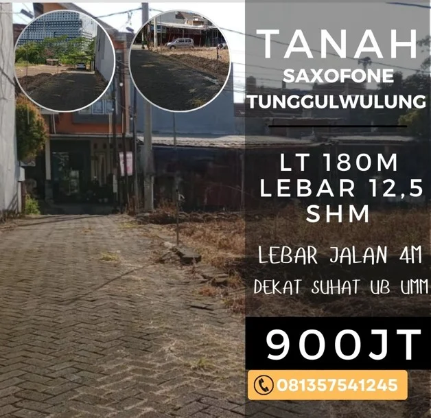 Tanah dijual di tunggulwulung tegalgondo UMM UB SUHAT lt180 900jt-an