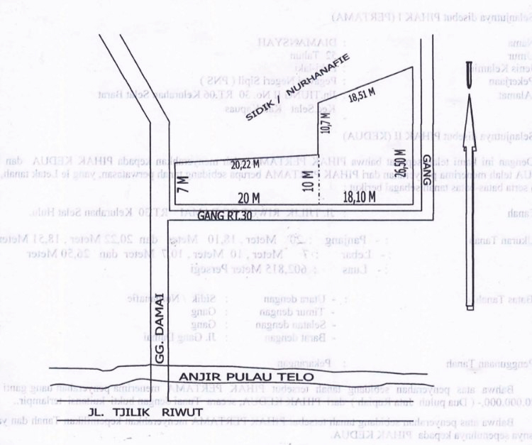- Alamat Lokasi Tanah: Jl. Cilik Riwut Gg. Damai RT.30, Kel. Selat Tengah, Kec. Selat, Kab. Kapuas, Kalimantan Tengah 73516